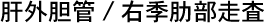 門脈の右腹側に拡張した肝外胆管,腹側に固有肝動脈が描出されている. 肝外胆管の拡張を簡便に評価するには,肋骨弓下からの短軸断面で門脈と径を比較するとわかりやすい. |